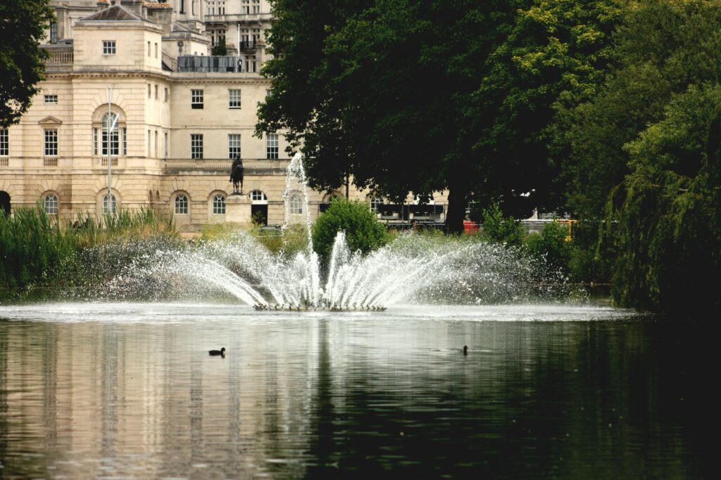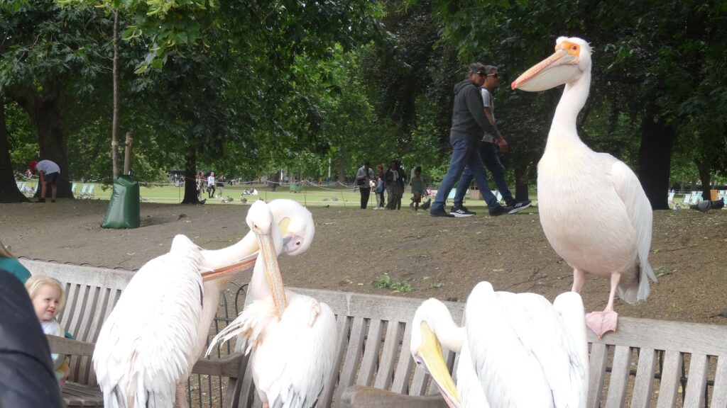 Derrière Buckingham (qu’on voit au fond..? je ne sais plus), le parc Saint James…